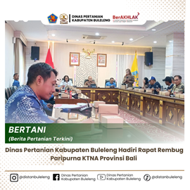Denpasar, 11 April 2025 — Kepala Bidang Penyuluhan dalam hal ini mewakili Dinas Pertanian Kabupaten Buleleng menghadiri Rapat Rembug Paripurna Kontak Tani Nelayan Andalan (KTNA) Provinsi Bali yang diselenggarakan pada hari Jumat, 11 April 2025, bertempat di Ruang Rapat Praja Sabha, Kantor Gubernur Provinsi Bali. Kehadiran dari Kepala Bidang Penyuluhan pada rapat tersebut sekaligus mendampingi jajaran pengurus KTNA Kabupaten Buleleng yang turut menjadi bagian dari peserta rapat ini.