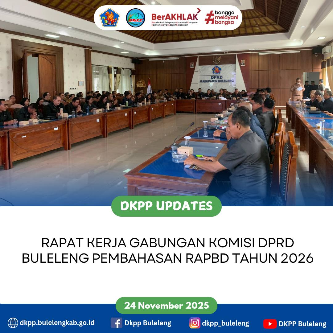 Plt. Kepala Dinas Ketahanan Pangan dan Perikanan Kabupaten Buleleng Gede Melandrat, SP. bersama Plt. Sekdis menghadiri Rapat Kerja Gabungan Komisi DPRD Buleleng Pembahasan RAPBD Tahun 2026, bertempat di Ruang Rapat Gabungan Komisi DPRD Buleleng