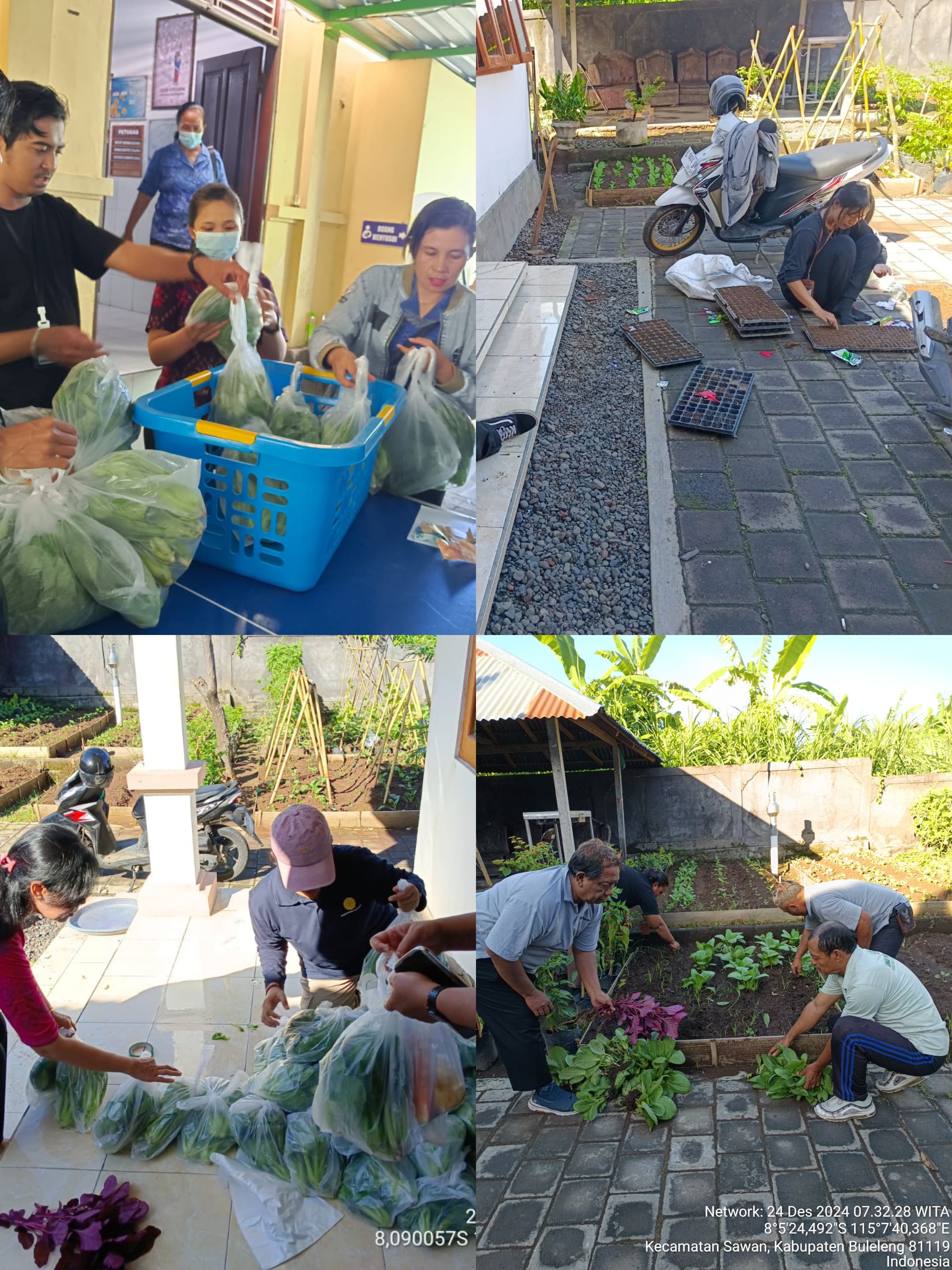 Selasa, 24 Desember 2024 Staff BPP Sawan melaksanakan berbagai kegiatan dalam pemanfaatan lahan pekarangan BPP dan melaksanakan aktifitas pelayanan kepada masyarakat di BPP Sawan. Untuk menjadikan lahan BPP Sawan terus dapat menghasilkan produk pertanian secara berkelanjutan dilakukan penanaman benih dan penanaman bibit sayuran sawi hijau dan pakcoy. Selain itu juga dilakukan kegiatan panen sayuran pakcoy pada lahan pekarangan yang dibudidayakan petugas pertanian di Balai Penyuluhan Pertanian Kecamatan Sawan. Sayuran yang telah dipanen selanjutnya dikemas dalam plastik dan dipasarkan disekitar lingkungan BPP Sawan dengan harga Rp. 5.000. Penjualan hari ini dilakukan di Puskesmas Sawan I dan Kantor Camat Sawan. Hasil penjualan yang didapatkan hari ini antara lain 46 ikat Pakcoy dengan total Rp. 230.000, hasil penjualan ini akan dimanfaatkan kembali untuk penanaman komoditas pertanian di BPP Sawan selanjutnya.