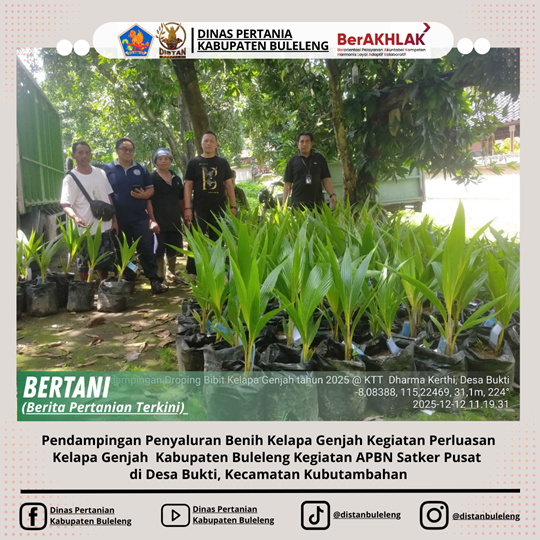 Pada hari ini Jumat tanggal 12 Desember 2025 Bidang Perkebunan melaksanakan kegiatan Pendampingan Penyaluran Benih Kelapa Genjah Kabupaten Buleleng Kegiatan Perluasan Kelapa Genjah APBN Satker Pusat Tahun 2025.