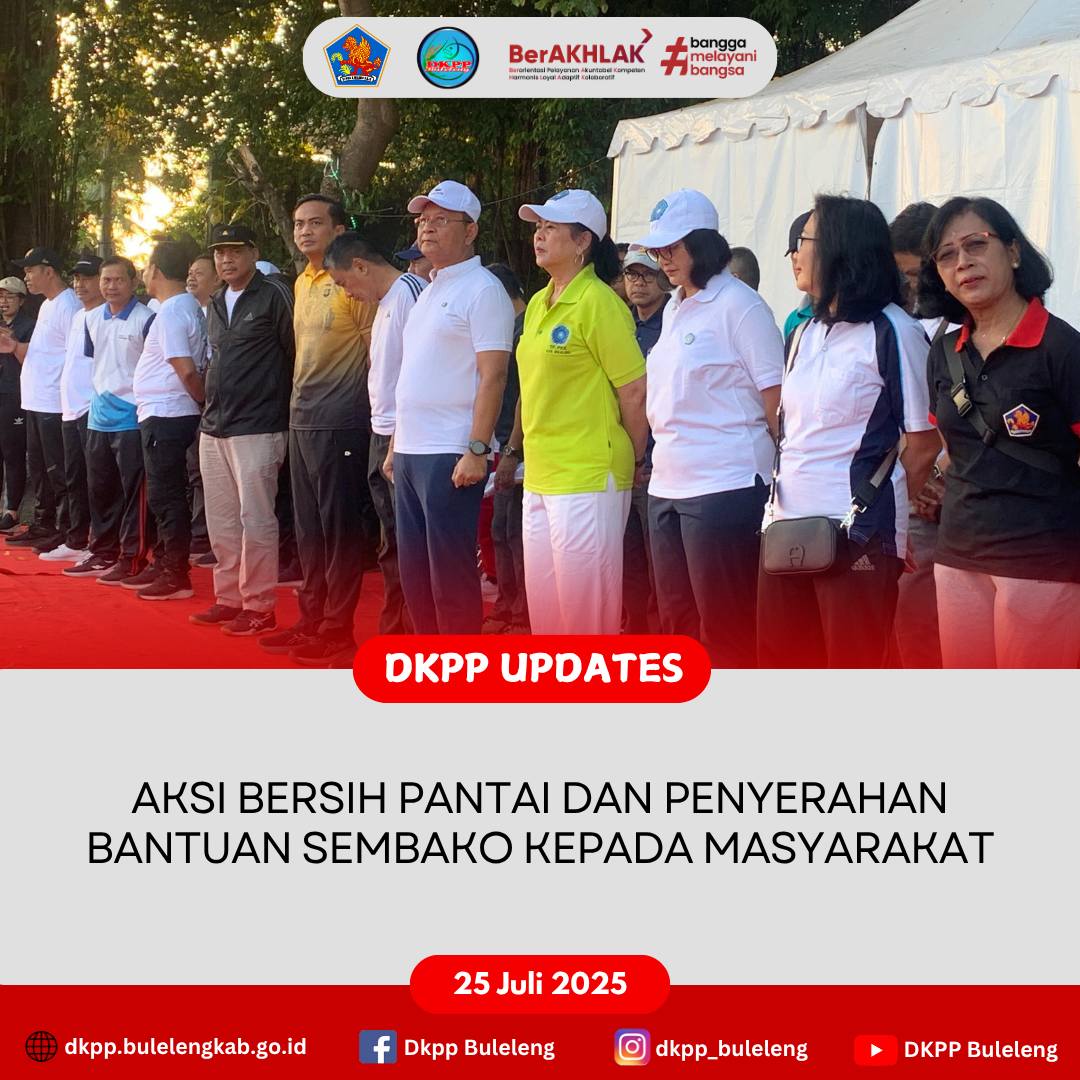 Jumat, 25 Juli 2025 - Dinas Ketahanan Pangan dan Perikanan (DKPP) Kabupaten Buleleng mengikuti Aksi Bersih Pantai / Beach Clean Up di kawasan Wisata Pantai Binaria dalam serangkaian Lovina Festival 2025.