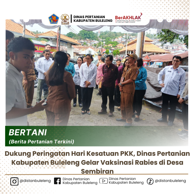 Hari ini Senin, 14 April 2025 Dalam rangka mendukung peringatan Hari Kesatuan PKK, Dinas Pertanian Kabupaten Buleleng, Bidang Peternakan dan Kesehatan Hewan bersama dengan Dinas Pertanian Ketahanan Pangan Provinsi Bali menggelar kegiatan vaksinasi rabies massal untuk hewan peliharaan, khususnya anjing dan kucing yang dilaksanakan di Desa Sembiran, Kecamatan Tejakula