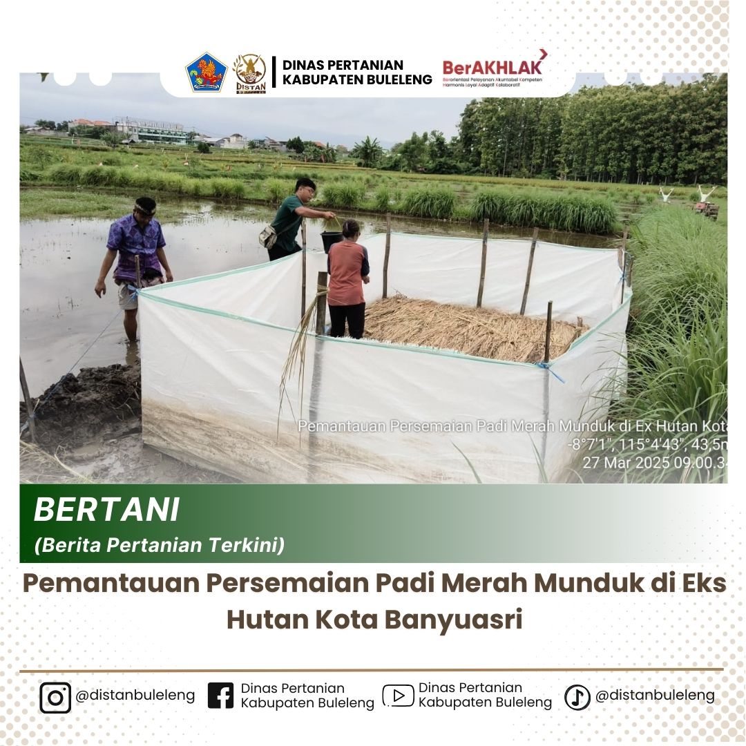 Kamis, 27 Maret 2025 dilaksanakan Pemantauan Persemaian padi merah Munduk, Persemaian dilakukan pada tanggal 25 Maret 2025. Kepala Bidang Tanaman Pangan beserta staf memantau perkembangan benih yang sudah disemai dan mengukur ketinggian air di sekeliling tempat persemaian.