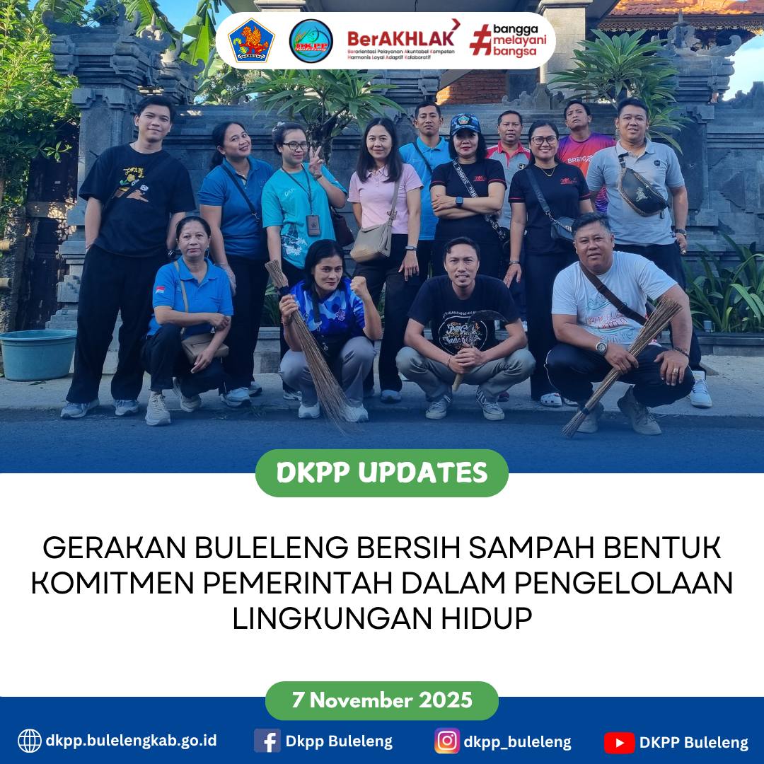 Hal ini juga sebagai bentuk komitmen dan aksi nyata Pemerintah dalam perlindungan dan pengelolaan lingkungan hidup, khususnya dalam mengatasi masalah sampah. Dalam hal ini, SKPD dan BUMD berperan sebagai koordinator wilayah pada masing - masing Desa/Kelurahan yang rutin mengadakan pembersihan sampah ini pada setiap hari Jumat disertai dengan sosialisasi dan edukasi Gerakan Buleleng Bersih Sampah kepada masyarakat. Selain itu, DKPP Buleleng juga melaksanakan pembersihan sampah di lingkungan kantor yang diikuti oleh seluruh jajaran.