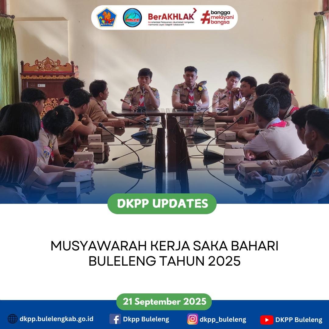 Minggu, 21 September 2025 - Diselenggarakan Musyawarah Kerja Satuan Karya Pramuka (Saka) Bahari Kwartir Cabang (Kwarcab) Gerakan Pramuka Buleleng, bertempat di Dinas Ketahanan Pangan dan Perikanan (DKPP) Kabupaten Bulelenng.