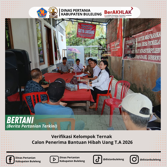 Pada hari ini, Rabu 29 Oktober 2025, dilaksanakan kegiatan verifikasi kelompok ternak calon penerima bantuan hibah uang Tahun Anggaran 2026 yang berlangsung di tiga kelompok ternak di wilayah Kecamatan Buleleng.