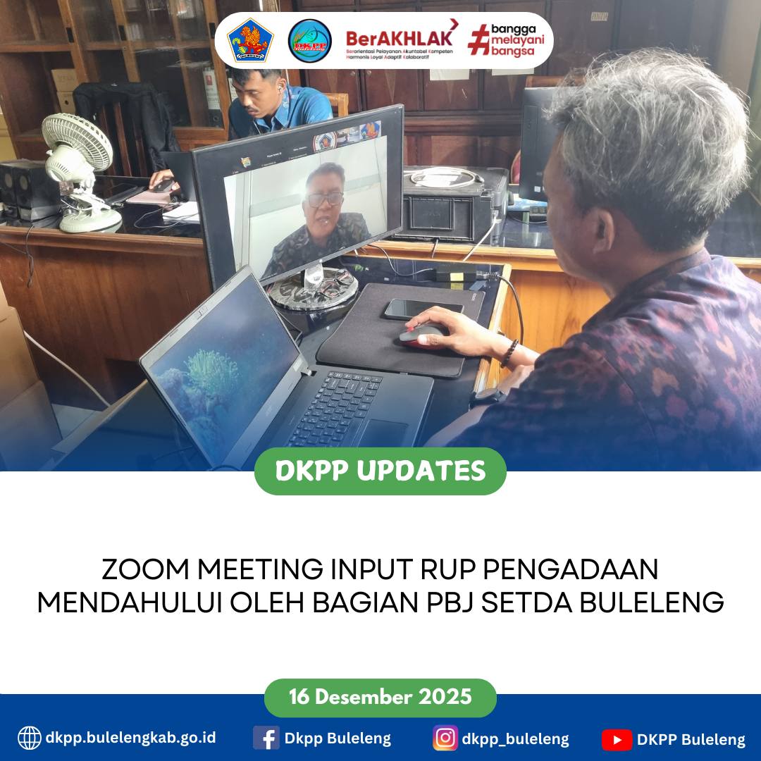 Dinas Ketahanan Pangan dan Perikanan (DKPP) Kabupaten Buleleng mengikuti Zoom Meeting Input Rencana Umum Pengadaan (RUP) pengadaan mendahului yang diadakan oleh Bagian Barang dan Jasa Setda Buleleng. Selasa (16/12)