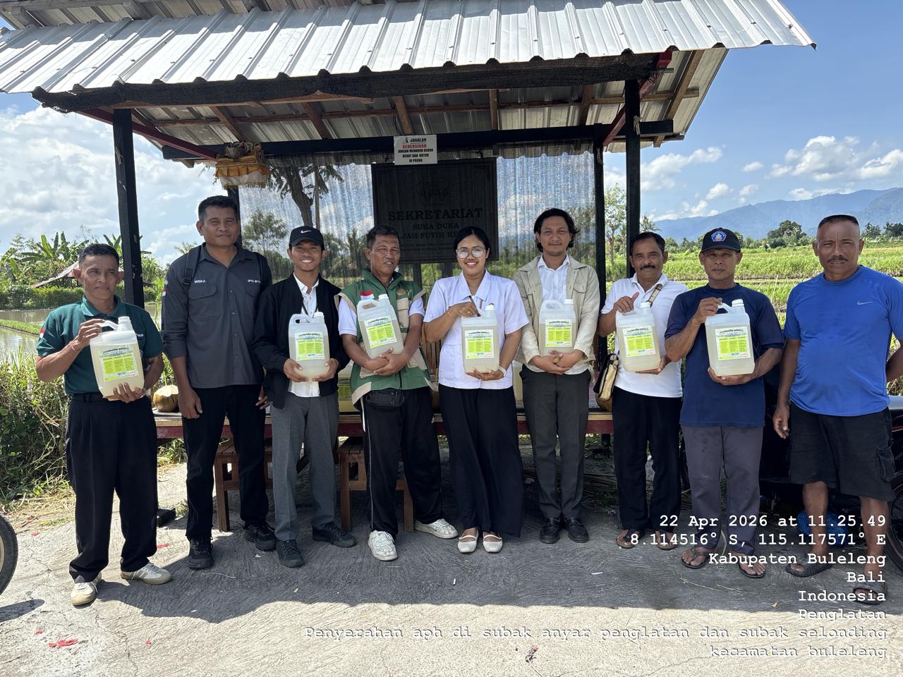 - Adapun rincian penyaluran sebagai berikut : Kecamatan Sukasada (Subak Pasut Silangjana 30 liter untuk 6 hektar, Subak Tembau : 20 liter untuk 4 hektar), Kecamatan Buleleng (Subak Anyar Penglatan : 50 liter untuk 10 hektar, Subak Selonding : 25 liter untuk 5 hektar), Kecamatan Sawan (Subak Babakan Kerobokan : 25 liter untuk 5 hektar, Subak Labak : 25 liter untuk 5 hektar, Subak Lanyahan Jagaraga : 25 liter untuk 5 hektar, Subak Menasa : 25 liter untuk 5 hektar)