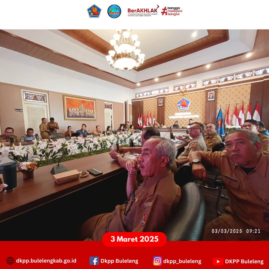 Senin, 3 Maret 2025 - Bertempat di Ruang Rapat Kantor Bupati Buleleng, Dinas Ketahanan Pangan dan Perikanan (DKPP) Kabupaten Buleleng mengikuti Zoom Meeting Rapat Koordinasi (Rakor) Pengendalian Inflasi Daerah dalam rangka upaya mengendalikan Inflasi khususnya menjaga Stabilisasi Harga Bahan Pangan pada Hari Besar Keagamaan Nasional (HBKN) Tahun 2025. Rakor ini melibatkan unsur kementerian/lembaga terkait hingga instansi Pemerintah Daerah yang tergabung dalam Tim Satgas Ketahanan Pangan dan TPID (Tim Pengendalian Inflasi Daerah).