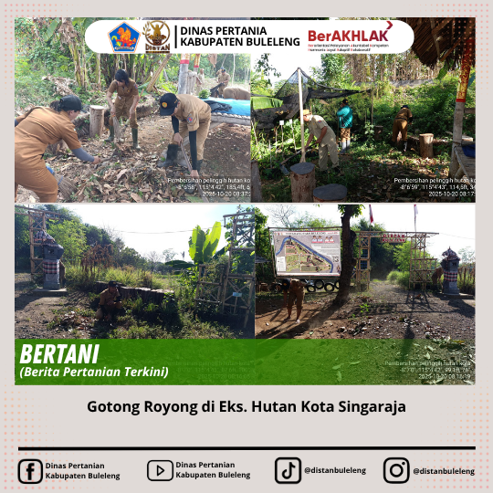 Kegiatan pembersihan di tanggal 20 oktober ini bertujuan untuk acara persembahyangan pada tanggal 21 oktober 2025 bersama seluruh karyawan/karyawati Dinas Pertanian Kabupaten Buleleng, sebagai rasa bakti dan syukur terhadap apa yang sudah kita lakukan dan dapatkan di seputaran lahan tersebut, agar senan tiasa mendapat anugrah keselamatan disetiap seluruh karyawan/karyawati berkegiatan disana.