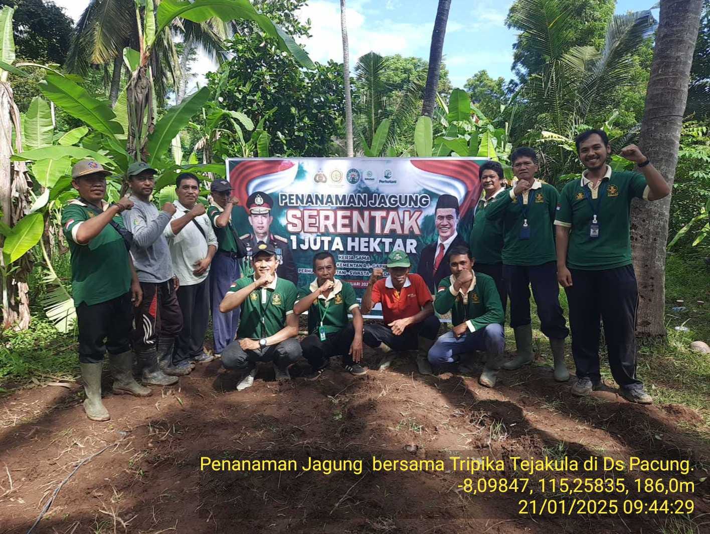 Selasa, 21 Januari 2025 dilakukan penanaman jagung sejuta hektar yang dilaksanakan di Poktan Demih Desa Pacung, kegiatan ini di hadiri oleh unsur muspika Kecamatan Tejakula (Camat, Kapolsek dan Danramil), anggota polsek, Bhayangkari dan staf kantor camat tejakula, perbekel Pacung, koordinator beserta para penyuluh, petugas data dan POPT BPP Tejakula, ketua Gapoktan Merta Sari dan Ketua Poktan Dungdung serta beberapa petani yang ada di wilayah Ds Pacung.