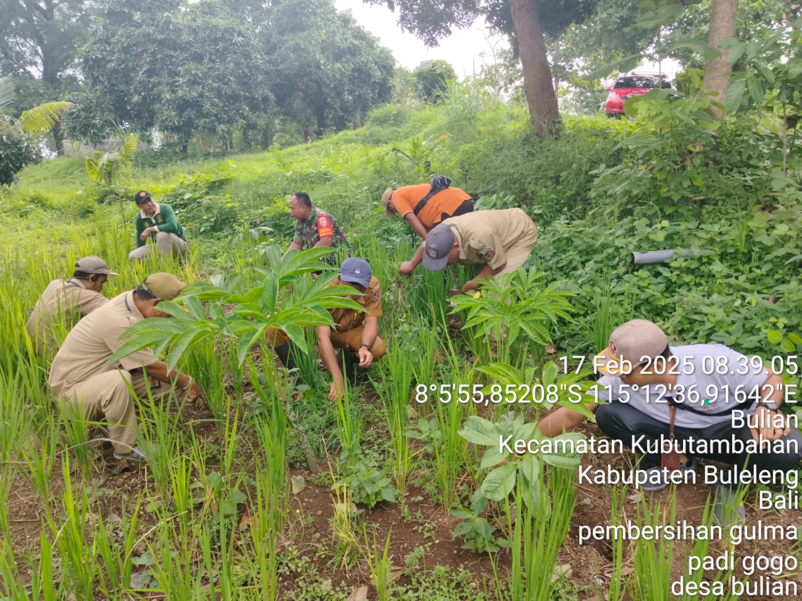 Dalam kegiatan persiapan piodalan pada Padmasana BPP Kubutambahan yang jatuh pada Buda Paing Landep, 19 Februari 2024, staf BPP Kubutambahan melakukan kegiatan pembersihan, penataan lingkungan khususnya pada Padmasana dan sekitaran serta melakukan pembuatan penjor piodalan. Sementara itu pada kegiatan gotong royong di Bulian bersama anggota Poktan Porang Adinatha dilaksanakan pembersihan atau penyiangan gulma pertanaman padi gogo yang telah dilakukan serentak pada 17 dan 20 Desember 2024 lalu. Usia tanaman kini adalah 59 hst. Penyiangan ini ditujukan untuk mengoptimalkan tanaman padi gogo tumbuh tanpa persaingan dari gulma yang turut menyerap unsur hara bagi tanaman utama.