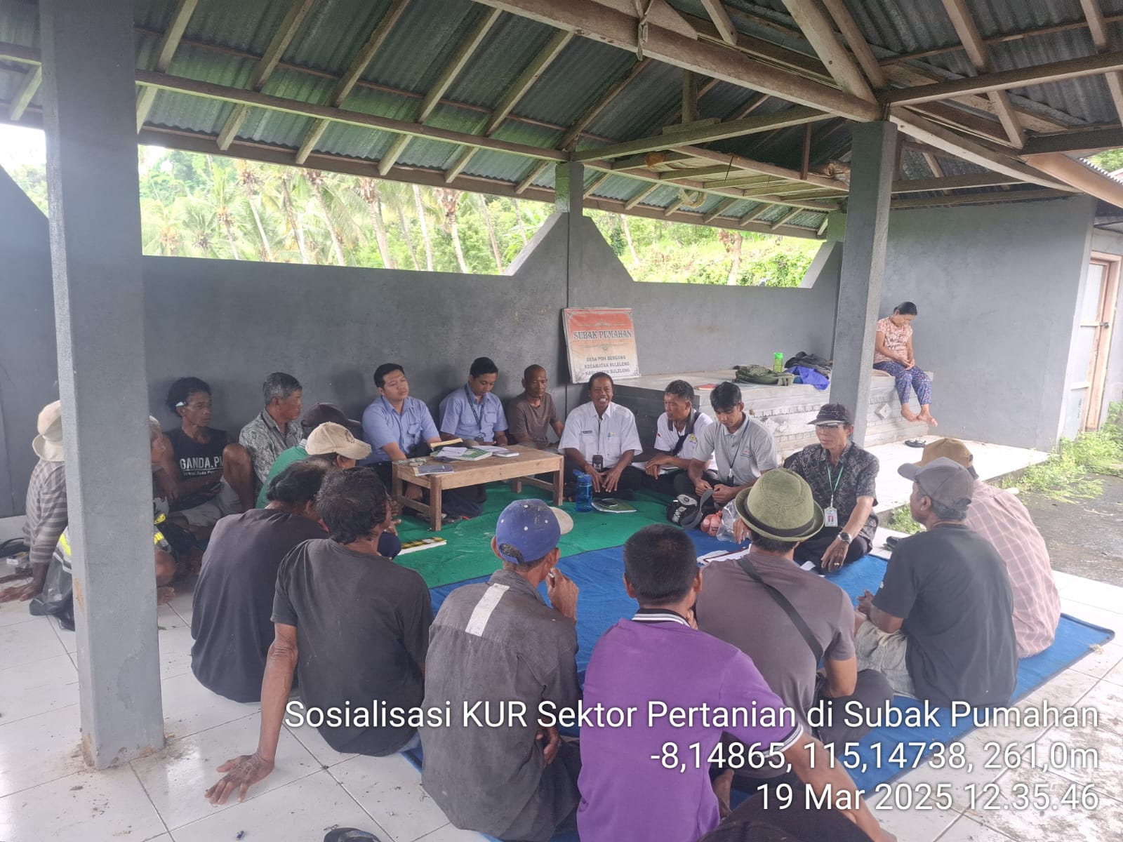 Hari ini Rabu, 19 Maret 2025, Bidang PSP yang diwakili oleh JF. Analis PSP dan staf menghadiri Sosialisasi KUR di Subak Pumahan - Desa Poh Bergong. Pertemuan ini dilaksanakan di Balai Subak Pumahan, Desa Poh Bergong, Kec. Buleleng. Selain itu juga, sosialisasi ini dihadiri oleh Perwakilan Bank BPD Bali, Kelian Subak Pumahan Desa Poh Bergong, Bapak Koordinator BPP Buleleng, PPL Desa Poh Bergong serta anggota Subak Pumahan.