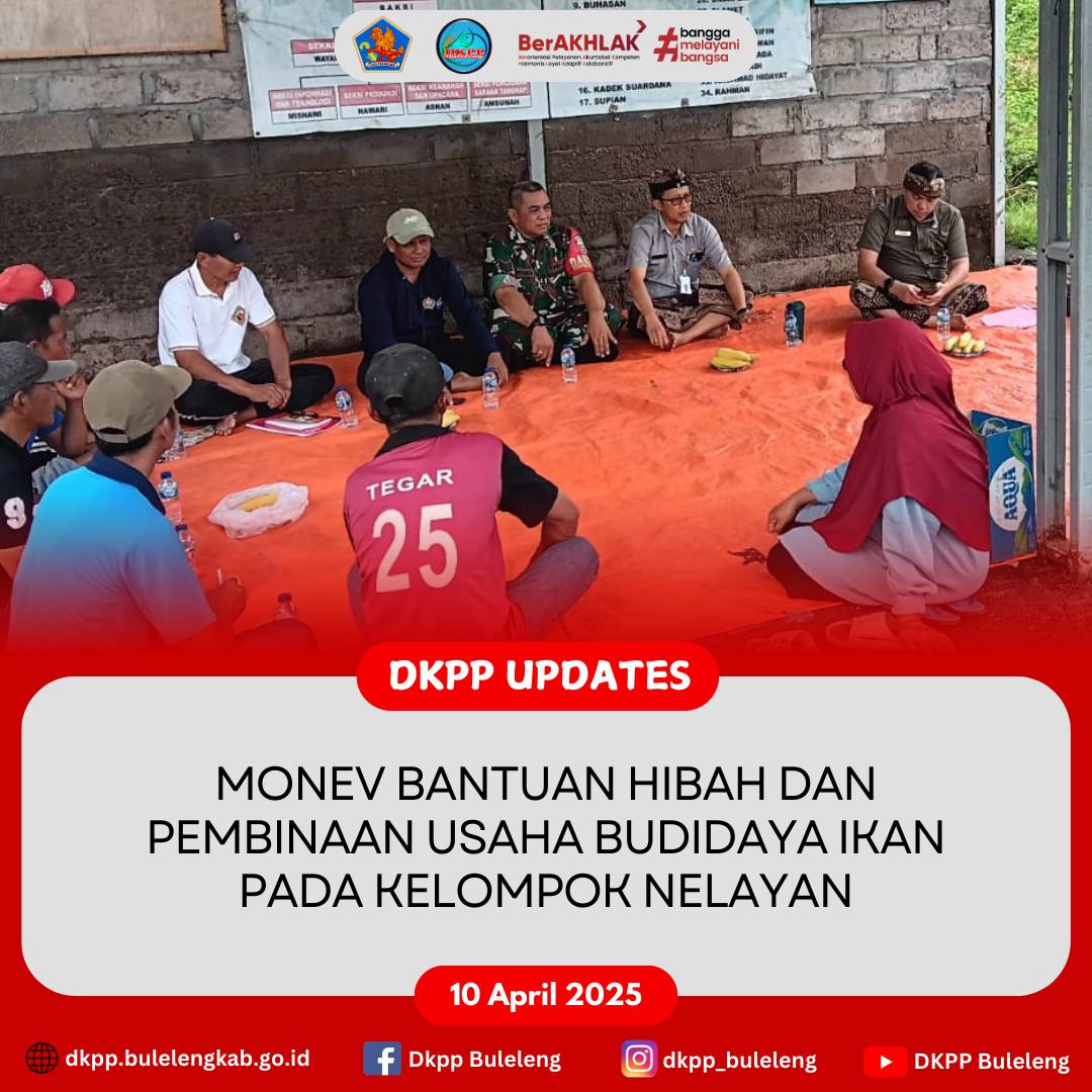 Kamis, 10 April 2025 - Kepala Dinas Ketahanan Pangan dan Perikanan Kabupaten Buleleng I Gede Putra Aryana, S.Sos., MAP. bersama jajaran melaksanakan Monev dan Pembinaan pada Nelayan Kelompok Usaha Bersama (KUB) Bunga Indah, Desa Sumberklampok, Kecamatan Gerokgak.