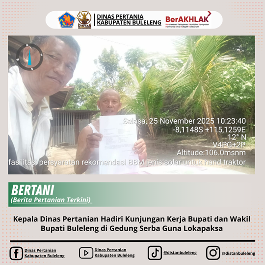 Dalam upaya memastikan kelancaran kegiatan pertanian di tingkat subak, Penyuluh Pertanian Lapangan (PPL) Wilayah Binaan Desa Jinengdalem melaksanakan kegiatan fasilitasi penyusunan dan pengajuan Surat Permohonan Bahan Bakar Minyak (BBM) untuk Petani yang masuk ke dalam Subak Anyar Tegal, Desa Jinengdalem.