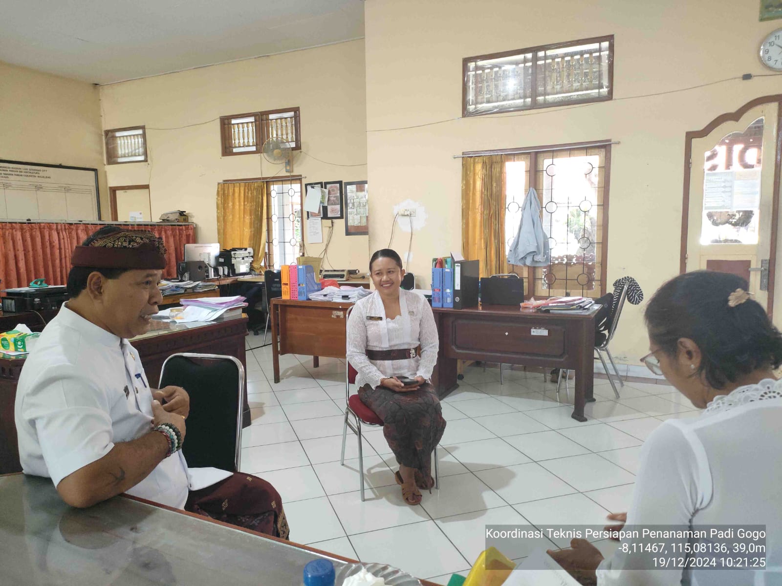 Kamis,19 Desember 2024 Kepala Dinas Pertanian Kabupaten Buleleng bersama Sekretaris Dinas dan Kepala Bidang Tanaman Pangan melakukan koordinasi terkait rencana kunjungan Direktur Sayuran dan Tanaman Obat Kementrian Pertanian selaku penanggung jawab kegiatan perluasan areal tanam (padi gogo) Provinsi Bali pada hari Jumat, 20 Desember 2024.
