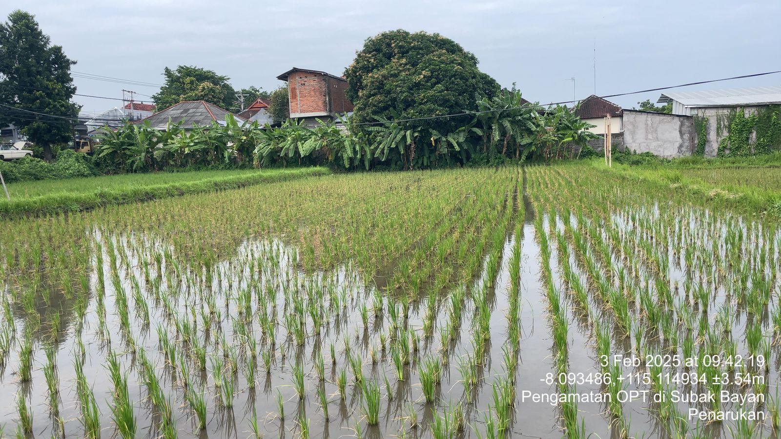 Dalam pengamatan kali ini, tim dari POPT Kec. Buleleng dan Kelian Subak Bayan serta dengan petani lokal melakukan inspeksi ke beberapa lokasi sawah di Subak Bayan. Petugas menemukan beberapa indikasi serangan penggerek batang pada beberapa tanaman padi yang tergolong massif pada varietas padi jenis Inpari 32 umur 30 HST dan jika dibiarkan dapat menyebabkan kerugian yang signifikan, terutama menjelang masa panen.