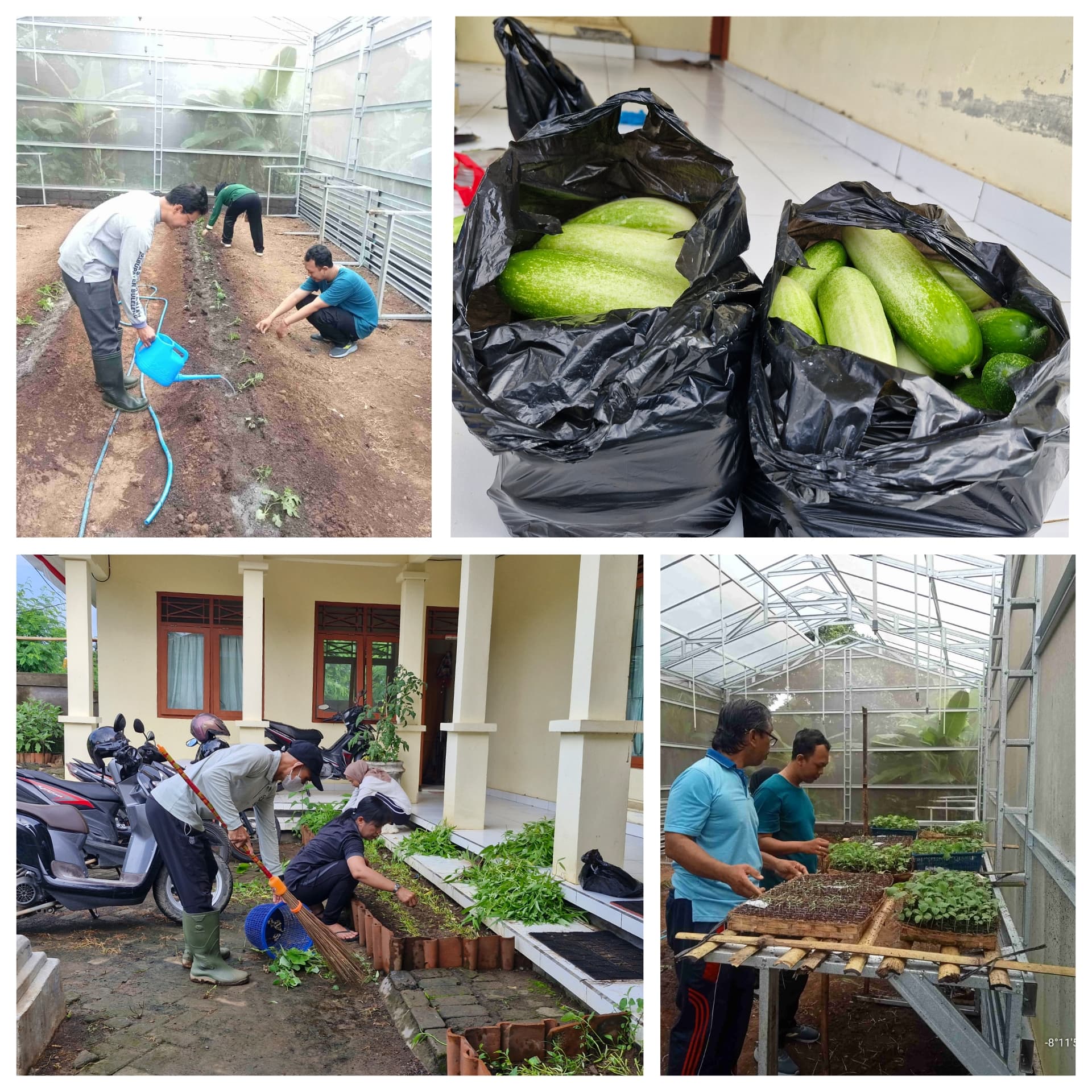 Kegiatan Krida/Jumat Bersih ini terdiri dari beberapa kegiatan, yaitu membersihkan ruangan dan halaman kantor BPP, memanen mentimun, memupuk tanaman semangka, dan menyiram bibit cabai dalam green house. Kegiatan ini dilaksanakan dengan semangat dan kerja sama yang baik dari seluruh pegawai.