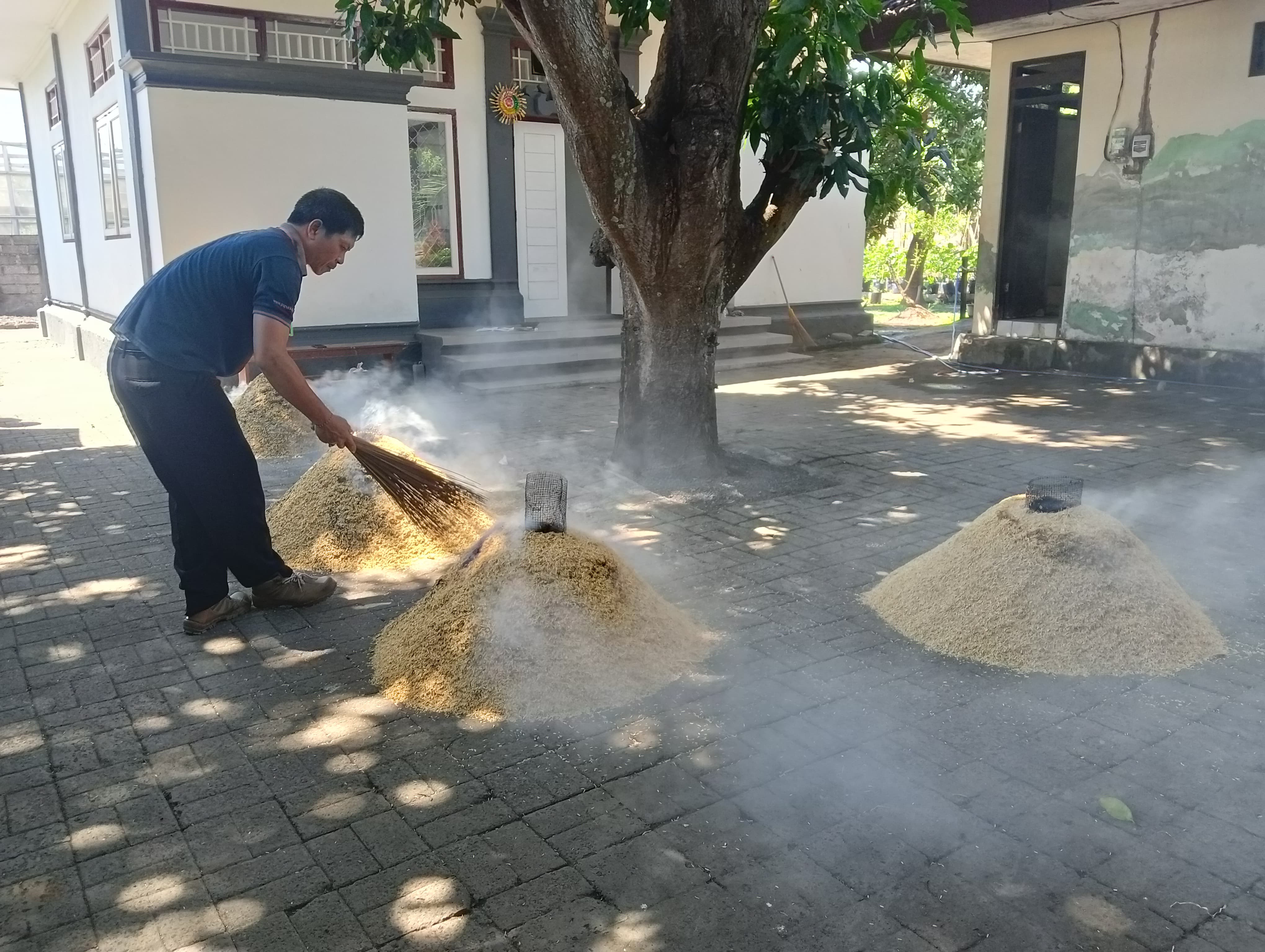 Pada hari ini Selasa 13 Agustus 2024 petugas BPP Seririt melakukan pembuatan media tanam dari arang sekam. Tahap pertama yang dilakukan yaitu menyiapkan alat pembakarannya terlebih dahulu. Sejumlah barang bekas yang sudah tidak terpakai dapat dimanfaatkan seperti misalnya kaleng biskuit atau drum besi tahan api. Usahakan agar ukurannya sekitar 20 liter. Kemudian dibuat lingkaran dengan diameter 10 cm pada bagian atas atau alas kaleng tersebut. Pastikan bahwa lubang itu berada tepat di tengah-tengah lingkaran. Pada bagian sisi kaleng, dibuat lubang dengan diameter 2-3 cm. Lubang ini berfungsi untuk membuang panas dari bahan bakar ke tumpukan sekam padi, tanpa harus membakar sekam secara langsung. Selanjutnya dibuat pipa panjang dengan ukuran lubang 10 cm. Lalu disatukan pipa tersebut dengan kaleng bekas tadi. Jika sudah maka letakkan kaleng tersebut di dalam lingkaran, yang sisi-sisinya sudah ditempatkan beberapa batu batako maupun bahan lainnya.
