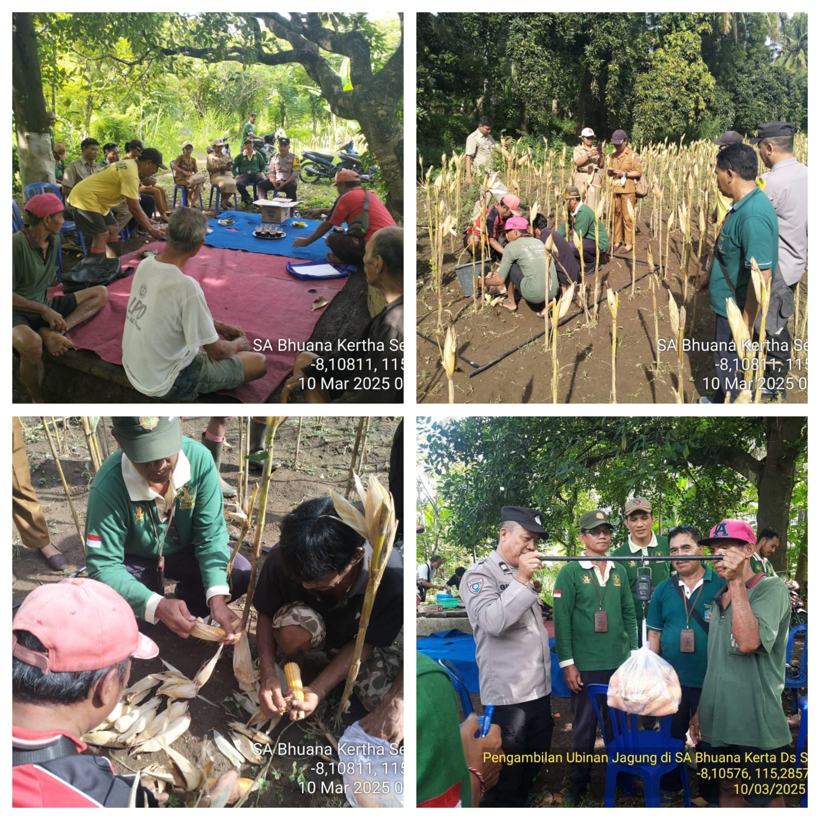 Pada Hari Senin, 10 Maret 2025 bertempat di Lokasi Lahan Bapak Nyoman Sudiana Anggota SA Bhuana Kertha dilaksanakan kegiatan pengambilan sample ubinan untuk pemanenan tanaman Jagung Bantuan pemerintah tahun 2024 yang dihadiri oleh Kabid Tanaman Pangan Kabupaten bersama Staf, Koordinator Penyuluh Pertanian Kecamatan Tejakula, Bhabimkamtibmas Desa Sembiran, Petugas Data BPP Kecamatan Tejakula bersama semua PPL Wilbin Sekecamatan Tejakula serta Anggota Kelompok Tani SA Bhuana Kertha Desa Sembiran Kecamatan Tejakula