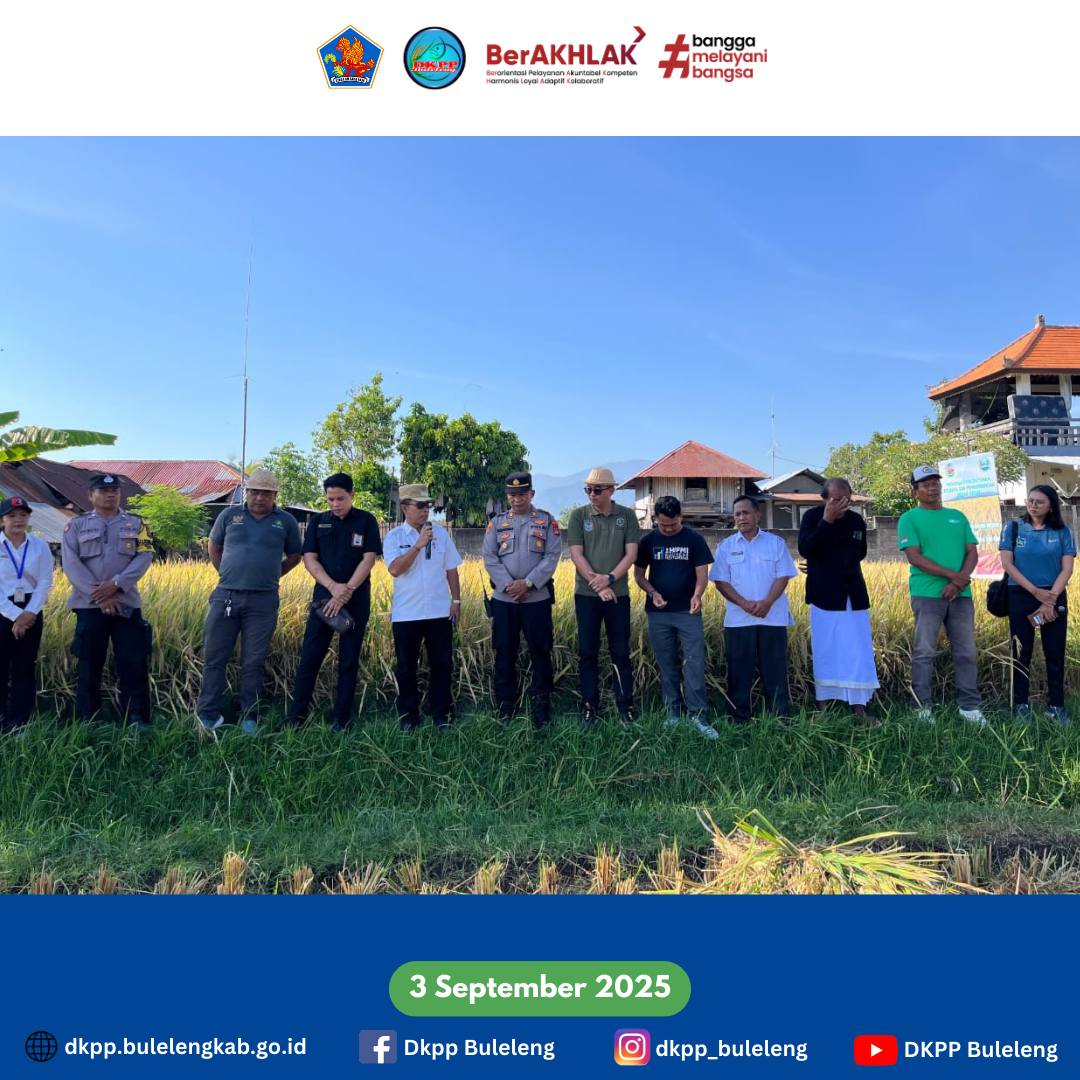 Dinas Ketahanan Pangan dan Perikanan (DKPP) Kabupaten Buleleng menghadiri Panen Perdana Program Percontohan, Edukasi, dan Pengembangan Beras Sehat yang merupakan Program Ketahanan Pangan dari BUMDes Labda Jaya Desa Giri Emas, Kecamatan Sawan. Varietas yang ditanam adalah padi mentik susu wangi dengan hasil ubinan 4,7. Kegiatan Panen ini dihadiri oleh Plt. Kadis Pemberdayaan Masyarakat Desa, serta para perwakilan instansi terkait. (3/9)