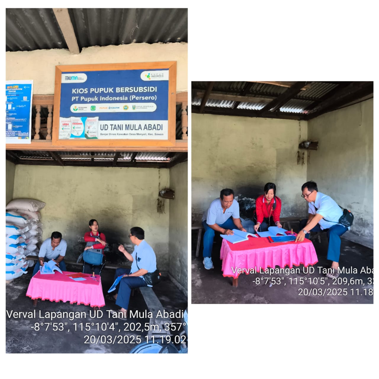 Kunjungan penyaluran pupuk bersubsidi dilaksanakan untuk mengetahui penebusan pupuk bersubsidi bulan Pebruari yang dilakukan kios dan pelaksanaannya dilapangan. Kegiatan ini langsung dilaksanakan oleh Koordinator P2K Sawan dan POPT Sawan ke kios pengecer resmi UD Tani Mula Abadi di Desa Menyali Kecamatan Sawan pada hari Kamis, 20 Maret 2025.