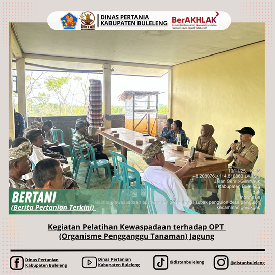 3. Pelatihan dimulai Jam 10.00 dengan Materi Dampak Perubahan Iklim disampaikan oleh Kepala Bidang Tanaman Pangan, Materi OPT Tanaman Jagung disampaikan oleh Koordinator POPT Kab. Buleleng serta Materi Bahan Pengendali disampaikan POPT Kec. Gerokgak