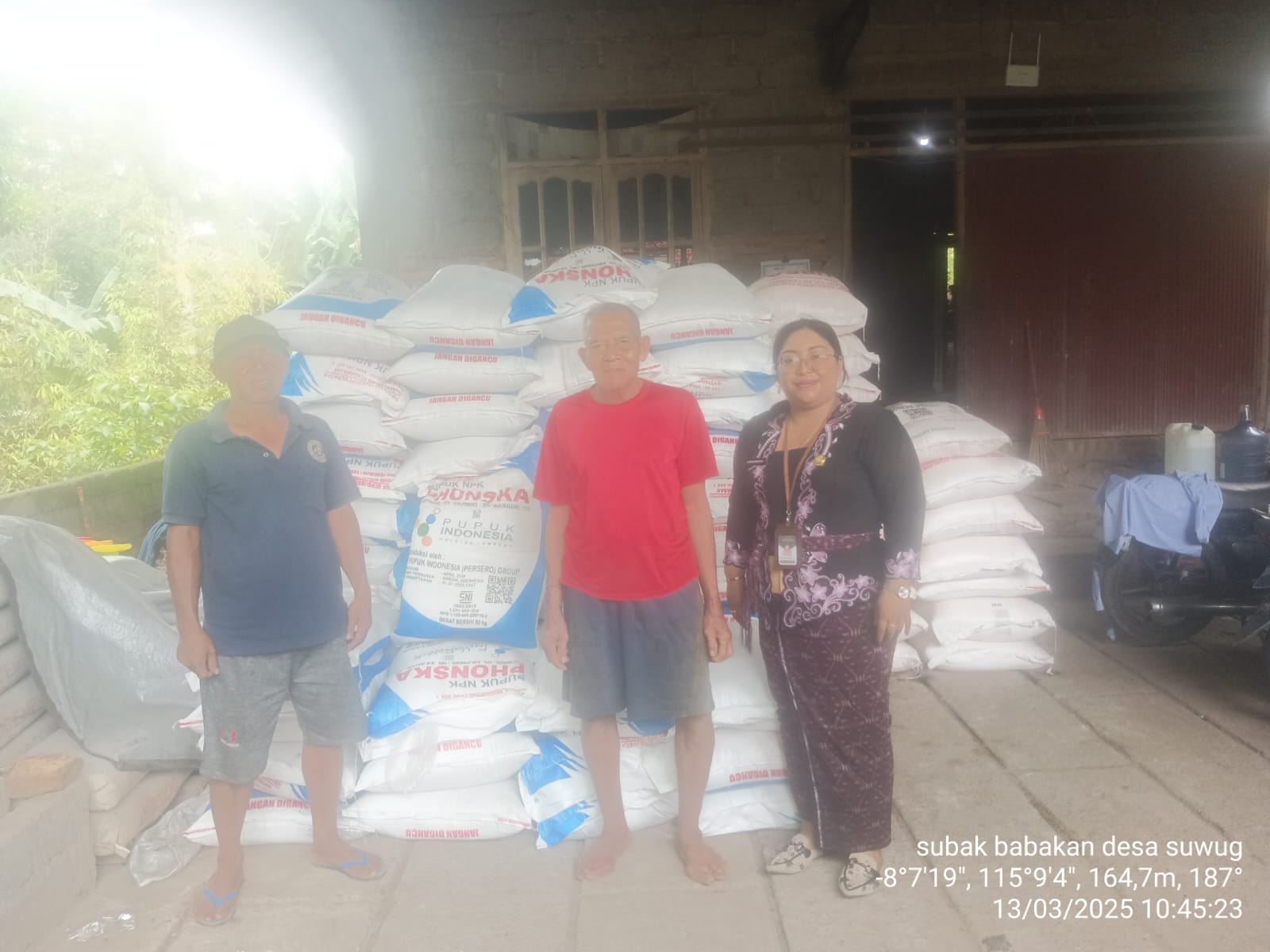 Pada hari ini Kamis 13 Maret 2025, Penyuluh Wilbin Suwug melaksanakan Kunjungan/Pendampingan Pembagian Pupuk bersubsidi di Subak Babakan, hadir Kelian subak dan anggota subak. Sebelum pupuk dibagikan Penyuluh menyampaikan beberapa hal :