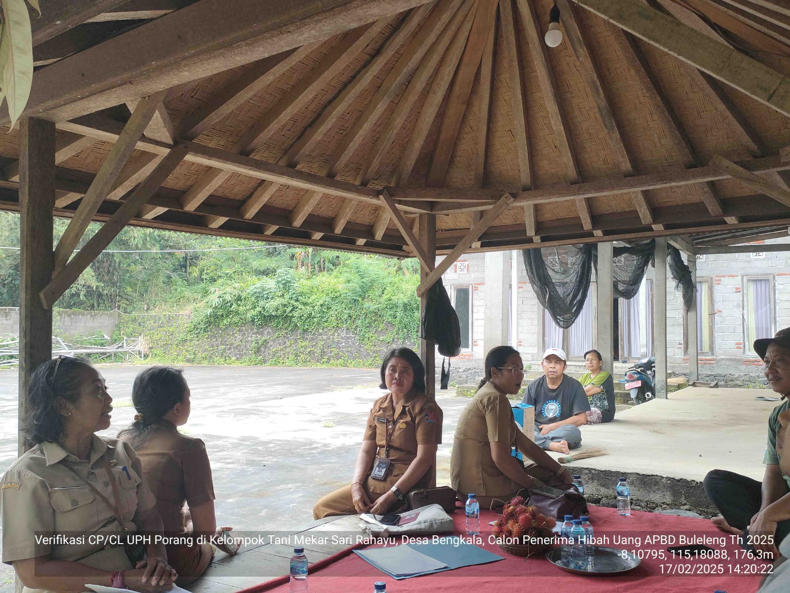 Didampingi oleh Penyuluh Pertanian Lapangan wilayah binaan Desa Bengkala dan ketua Kelompok Tani I Ketut Darpa beserta anggota Kelompok Tani. Dalam verifikasi ini Kepala Bidang Tanaman Pangan menyampaikan beberapa kelengkapan yang perlu dipersiapkan oleh Kelompok Tani diantaranya :