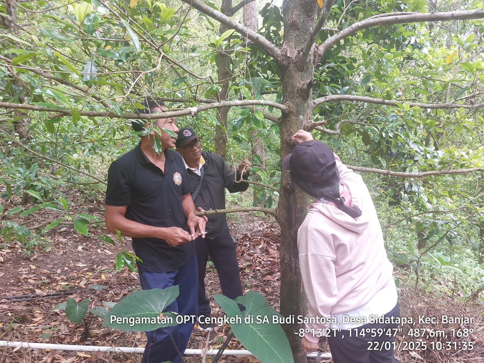 Pengamatan OPT (Organisme Pengganggu Tumbuhan) pada tanaman cengkeh dilaksanakan di Subak Abian Budi Santosa pada Rabu, 22 Januari 2025. Pengamatan dilakukan oleh POPT Kec. Banjar, PPl Wilbin dan anggota subak.