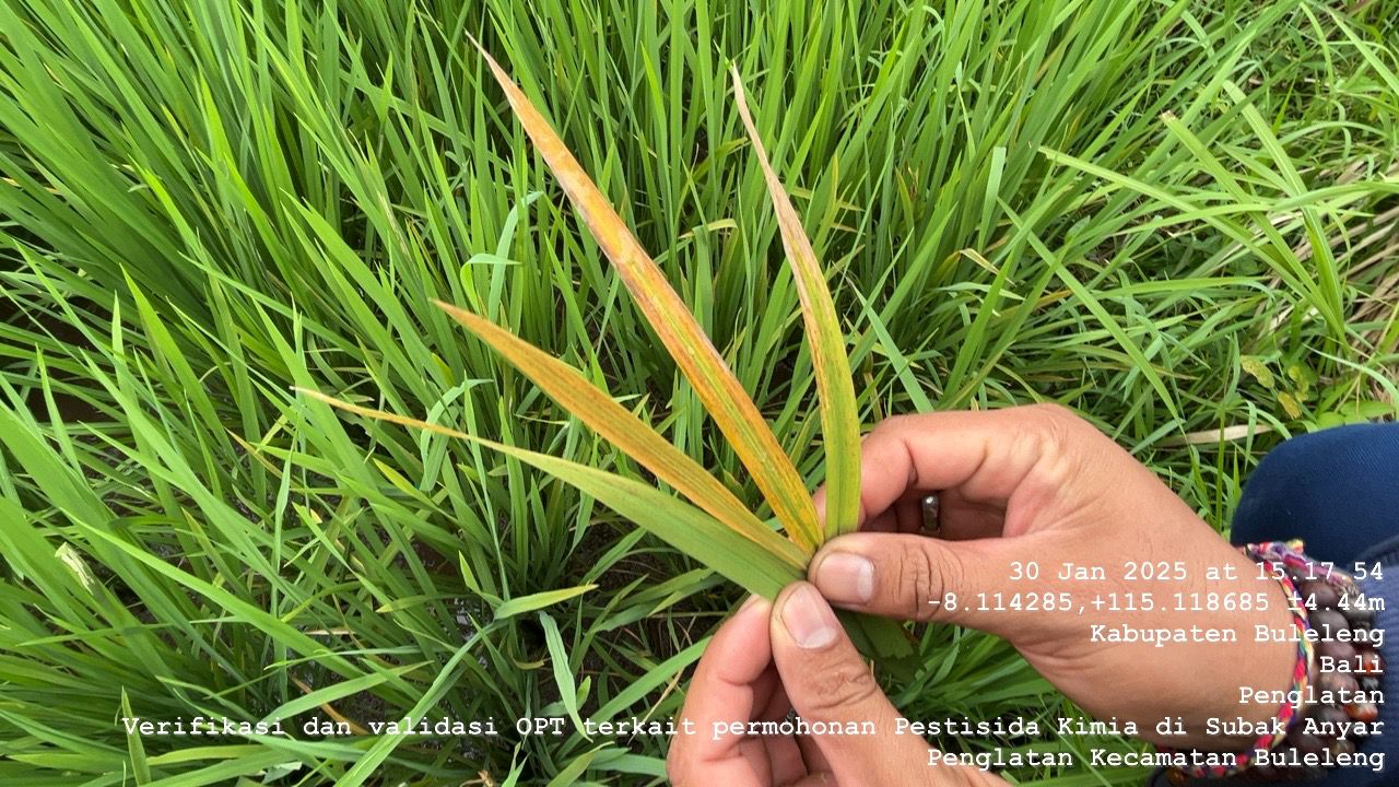 Buleleng, 30 Januari 2025 – Petugas Pengendali Organisme Pengganggu Tumbuhan (POPT) Kecamatan Buleleng Kabupaten Buleleng hari ini melakukan pengamatan terhadap serangan organisme pengganggu tumbuhan (OPT) Kresek pada tanaman padi di Subak Anyar, Desa Penglatan. Kegiatan ini dilakukan untuk mengidentifikasi kondisi tanaman padi yang terpapar penyakit kresek dan memberikan rekomendasi pengendalian yang tepat kepada para petani setempat.