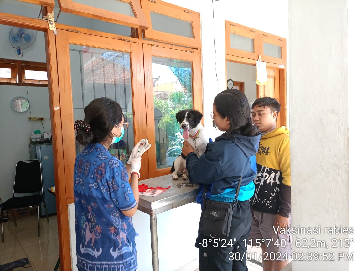 Selasa 30 Januari 2024 telah dilaksanakan pelayanan vaksinasi rabies oleh dokter hewan pada anjing jantan berumur 5 bulan milik warga Gede Mertadana dari Banjar Dauh Munduk Desa Bungkulan, Kecamatan Sawan. Sebagai bentuk pelayanan kepada masyarakat yang berperan aktif dalam menjaga kesehatan hewan peliharaan, petugas memberikan KIE tentang bahaya rabies dan tindakan yang dilakukan pasca gigitan serta melaporkan kepada petugas untuk mendapatkan penanganan. Tujuan vaksinasi adalah memberikan kekebalan terhadap serangan virus rabies, sekaligus memberikan perlindungan bagi manusia dari adanya penularan rabies melalui gigitan.