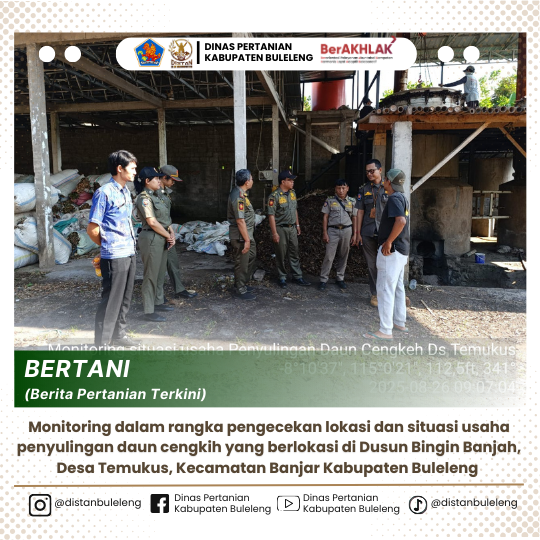 26 Agustus 2025 , hari ini dua staf bidang perkebunan Harisca Rusmaedy,S.P. (Penata Layanan Operasional) dan Komang Suarnaya ( Pengadministrasi Perkantoran) melakukan monitoring dalam rangka pengecekan lokasi dan situasi usaha penyulingan daun cengkih yang berlokasi di Dusun Bingin Banjah, Desa Temukus, Kecamatan Banjar Kabupaten Buleleng sesuai isi dalam surat tugas Nomor : B.800.1.11.1/3043/DISTAN/2025