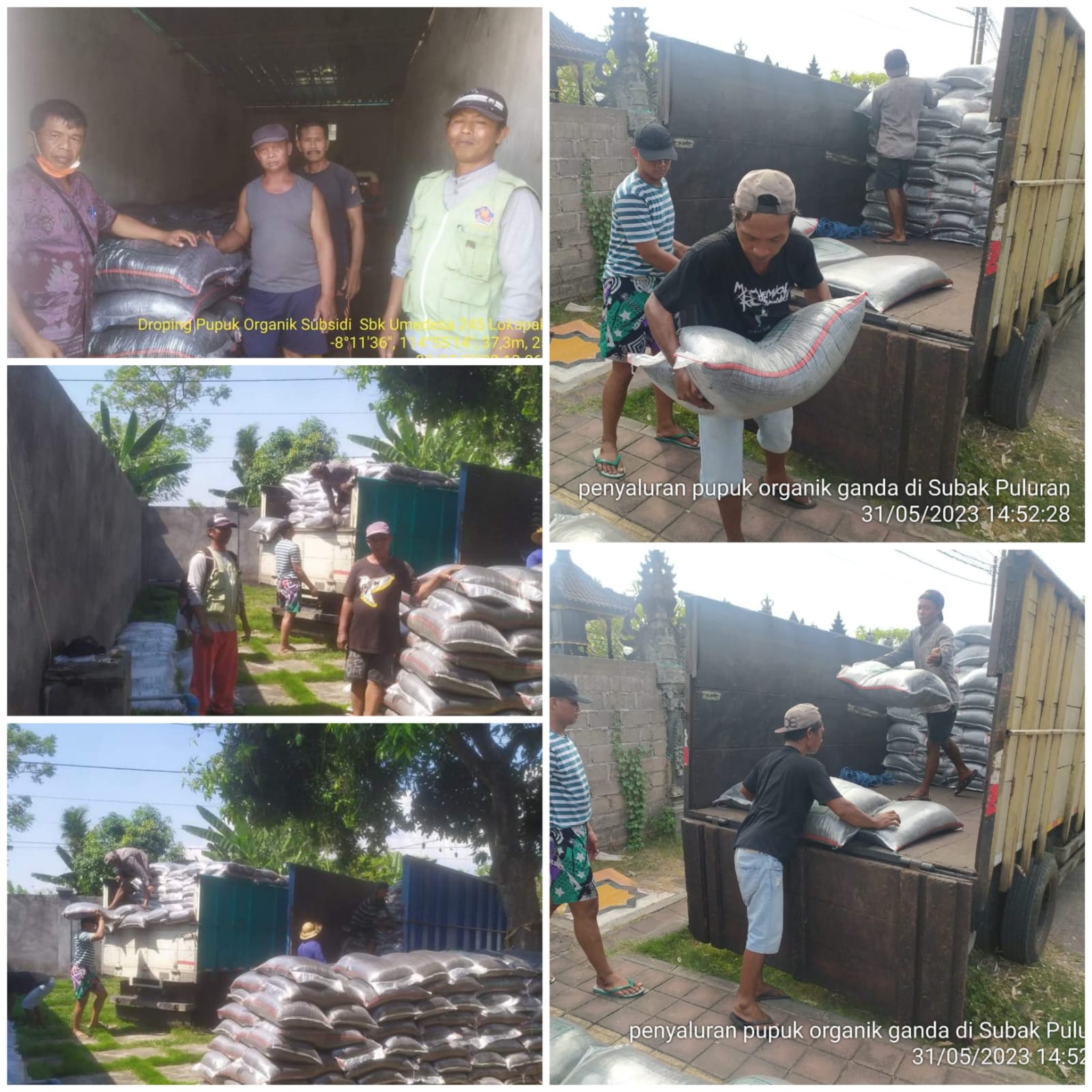 Rabu, 31 Mei 2023 dilaksanakan pendistribusian pupuk organik subsidi ganda ke Subak Umedesa 245 dan Subak Puluran yang didampingi oleh PPL wilbin masing-masing desa. Proses serah terima pupuk organik subsidi ganda ke subak diwakili oleh Klian Subak Umedesa 245 (Made Suparta) dan Klian Subak Puluran (Made Sarjana). Total pupuk organik subsidi ganda yang didistribusikan hari ini sebanyak 119,8 ton.