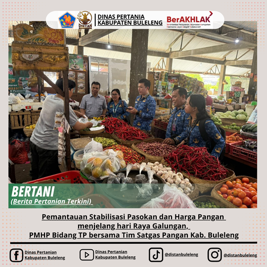 Pemantauan Stabilisasi Pasokan dan Harga Pangan menjelang hari Raya Galungan, PMHP Bidang TP bersama Tim Satgas Pangan Kab. Buleleng, daftar harga hasil pemantauan hari ini, sbb :