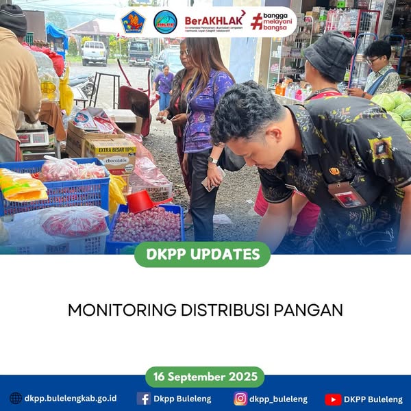 Selasa, 16 September 2025 - Dinas Ketahanan Pangan dan Perikanan (DKPP) Kabupaten Buleleng melalui Bidang Distribusi dan Cadangan Pangan melaksanakan Monitoring Distribusi Pangan berlokasi di Pasar Pancasari, khususnya pada Toko Panca Warna. Adapun rincian data sebagai berikut.