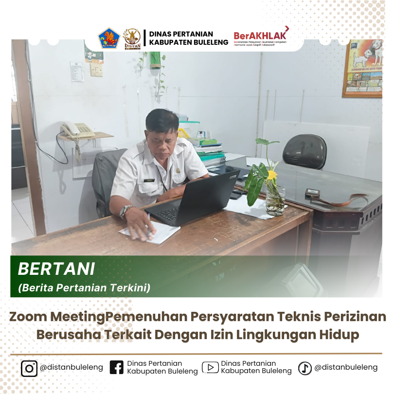 Zoom Meeting Pemenuhan Persyaratan Teknis Perizinan Berusaha Terkait Dengan Izin Lingkungan Hidup Direktorat Jenderal Peternakan dan Kesehatan Hewan (Ditjen PKH), Kementerian Pertanian, menggelar Zoom meeting bertajuk “Pemenuhan Persyaratan Teknis Perizinan Berusaha Terkait dengan Izin Lingkungan Hidup”, yang dilaksanakan pada hari Rabu, 7 Mei 2025 sebagai nara sumber drh. Dwi sari Y dari Ditjen KESMAVET. Kegiatan ini diikuti oleh perwakilan dari berbagai daerah yang menangani fungsi peternakan dan kesehatan hewan serta UPTD RPH termasuk Dinas Pertanian bidang Peternakan dan Kesehatan Hewan Kabupaten Buleleng, Provinsi Bali.
