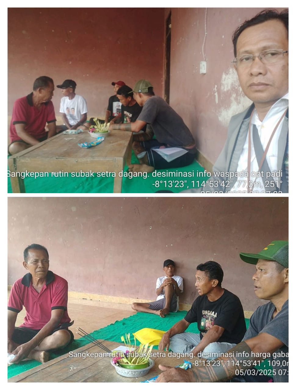 Rabu, 5 Maret 2025 telah dilaksanakan kegiatan sangkepan di Subak Setra dagang, Desa Pangkung paruk, Kecamatan Seririt yang dimana dihadiri oleh Kelian subak, sekretaris, bendahara, anggota subak serta PPL wilbin Desa Pangkung paruk. Adapun kegiatan sangkepan ini dilaksanakan setiap satu bulan kalender Bali (35 hari) sekali.