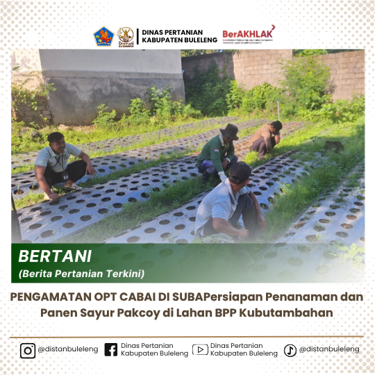 Pegawai BPP Kubutambahan Melaksanakan Gotong Royong dalam persiapan penanaman Sayur Pakcoy di Sisi Utara Keswan dan Persiapan Panen Tanaman Sayur Pakcoy di sisi Barat Kantor BPP. Adapun Kegiatan yang dilakukan adalah: