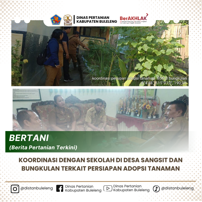 Dalam mewujudkan ketahanan pangan koordinator BPP Sawan menugaskan petugas pertanian Kecamatan Sawan untuk melakukan koordinasi terkait persiapan kegiatan adopsi tanaman ke 2 Sekolah Dasar yang ada di wilayah kerja BPP Sawan. Sekolah tersebut antara lain: SD N 1 Sangsit dan SD N 3 Bungkulan. Kegiatan ini dilaksanakan terkait dengan surat permintaan bantuan tanaman dari ketiga SD tersebut ke BPP Sawan. Koordinasi dilaksanakan langsung bersama dengan Kepala Sekolah dan guru SD N 1 Sangsit dan SD N 3 Bungkulan. Adapun yang dibahas pada saat melaksanakan pertemuan antara lain: