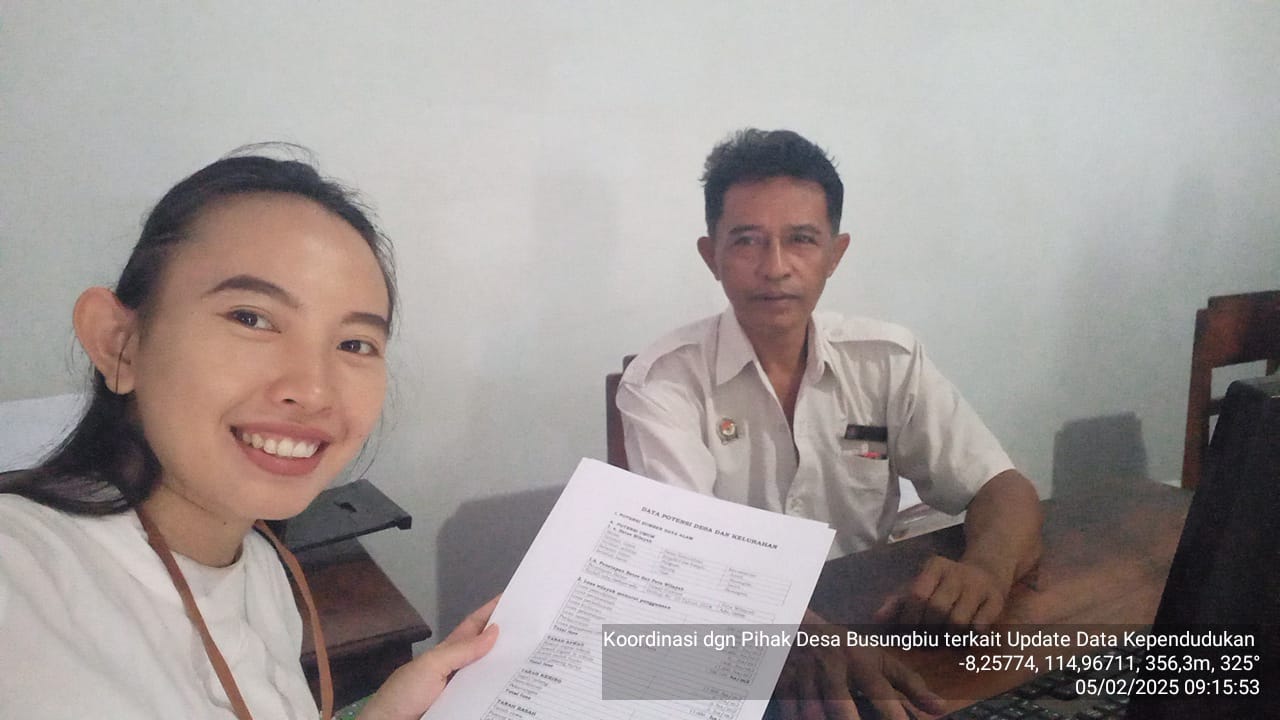 Rabu, 5 Februari 2025, kegiatan ppl wilbin Desa Busungbiu ialah kunjungan dan koordinasi dengan perangkat desa. Koordinasi ini dilakukan untuk permintaan data update kependudukan dan profil Desa Busungbiu untuk kebutuhan menyusun IPW.
