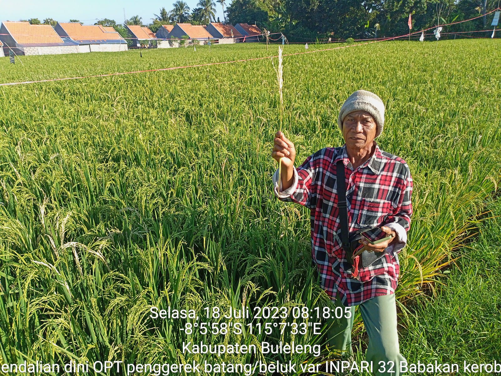 Hama Penggerek Batang Padi (PBP) merupakan salah satu hama utama pada tanaman padi. Kerugian hasil akibat serangan hama ini dapat menurunkan kuantitas dan kualitas produksi padi. Hama penggerek batang padi dapat menyerang tanaman padi pada stadia umur muda atau vegetative atau dikenal sebagai hama sundep dan menyerang tanaman stadia generative. Pada hari ini, Selasa 18 Juli 2023 telah dilakukan pengendalian OPT Hama Penggerek batang dengan varietas Inpari 32 berumur 55 hst di Subak Babakan Kerobokan seluas 0.50 ha oleh petani didampingi PPL Wilbin Desa Kerobokan. Terjadinya serangan ini sebenarnya dapat diatasi dengan mendeteksi dini mengamati tanaman padi.