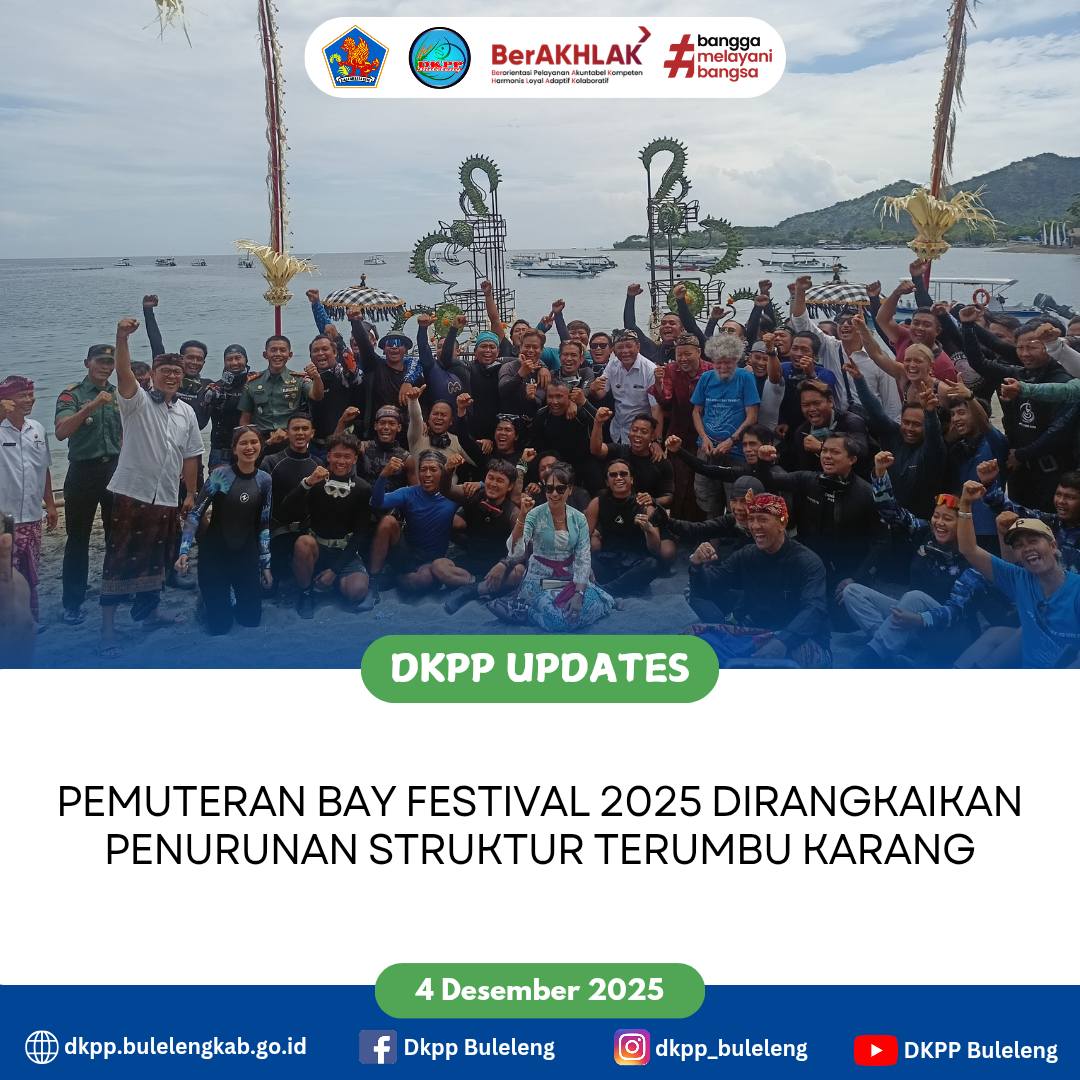 Dinas Ketahanan Pangan dan Perikanan (DKPP) Kabupaten Buleleng yang dihadiri Kabid Pemberdayaan Masyarakat Perikanan dan anggota Saka Bahari Buleleng mengikuti acara pembukaan Pemuteran Bay Festival 2025 dan Penurunan Struktur Terumbu Karang di Segara Biorock, Desa Pemuteran, Buleleng. Kamis (4/12)