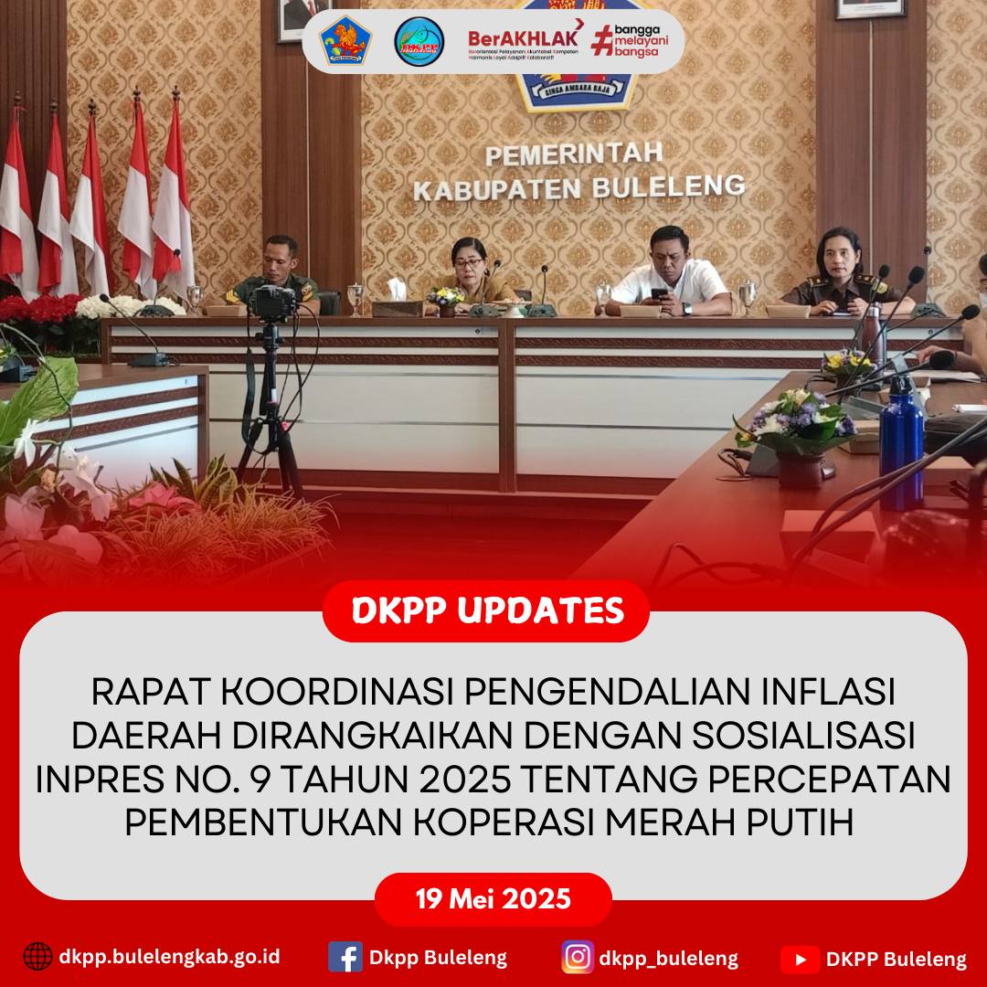 Pemerintah Provinsi melalui Gubernur wajib untuk mengendalikan Bupati/Walikota dalam percepatan pembentukan koperasi merah putih. Salah satu sumber pembiayaan pembentukan koperasi merah putih adalah Biaya Tidak Terduga (BTT) yang telah disiapkan dasar hukumnya. Keputusan Presiden No. 9 Tahun 2025 tentang Satgas Nasional Percepatan Pembentukan Koperasi Merah Putih ditugaskan untuk membentuk 80.000 koperasi hingga tanggal 12 Juli 2025 yang sekaligus Peringatan Hari Koperasi. Harga pangan di Indonesia secara umum dapat dikategorikan stabil, namun diperkirakan harga gabah akan terus naik hingga 7.000 rupiah, sehingga perlu adanya intervensi. Sektor penyumbang inflasi antara lain adalah listrik, tiket pesawat, cabe rawit dan cabe merah, namun sebagian besar provinsi di Indonesia terjadi penurunan IPH (Indeks Perkembangan Harga) di minggu III Bulan Mei 2025. Penegasan Asisten Perekonomian dan Pembangunan Setda Buleleng terkait progres pembentukan koperasi merah putih, khususnya Dinas DagperinkopUKM dan Dinas PMD Buleleng.