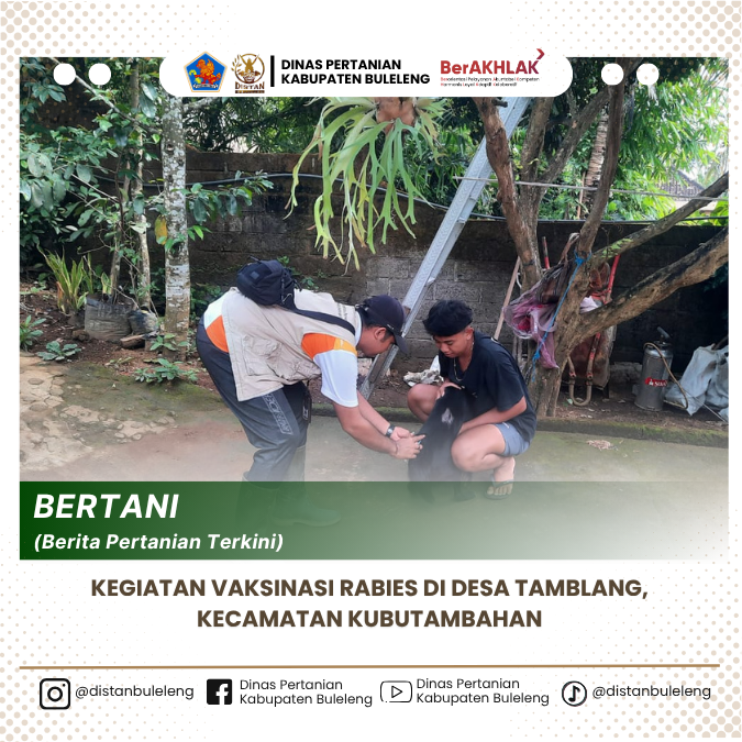 Dalam pencegahan Rabies di Kecamatan Kubutambahan, khususnya di wilayah Desa Tamblang, maka Dinas Pertanian Kabupaten Buleleng (Puskeswan Kubutambahan) yang dikoordinir oleh drh. I Nyoman Sarsana, beserta petugas vaksinasi lainnya, didampingi PPL Wilbin Kubutambahan dan Kepala Dusun melaksanakan kegiatan pelayanan vaksinasi rabies bagi Hewan Pembawa Rabies (HPR).