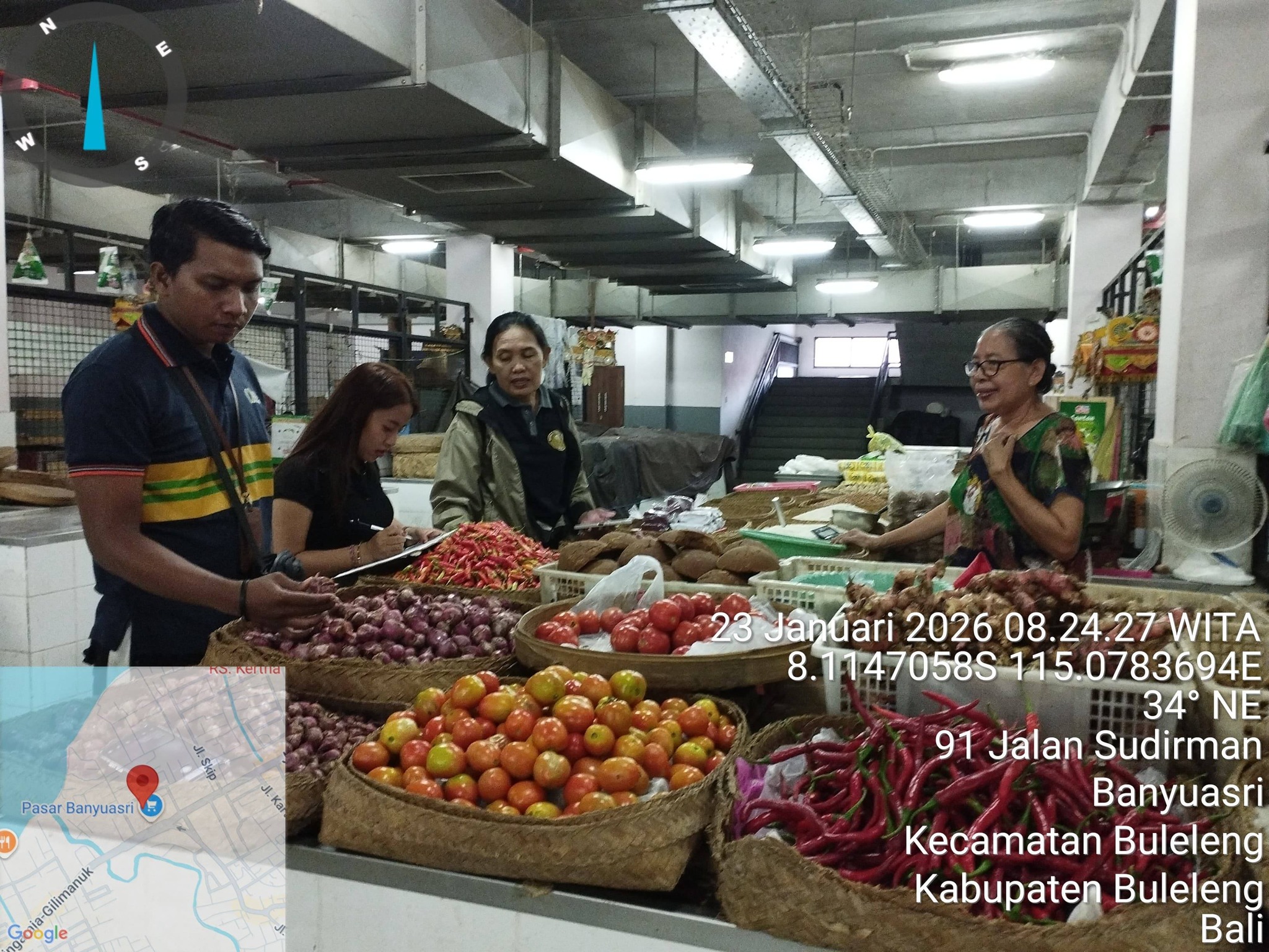 Dinas Ketahanan Pangan dan Perikanan (DKPP) Kabupaten Buleleng melalui Bidang Distribusi dan Cadangan Pangan melakukan Pemantauan Harga Pangan di Pasar Banyuasri, dan di Pasar Anyar. Jumat (23/1)