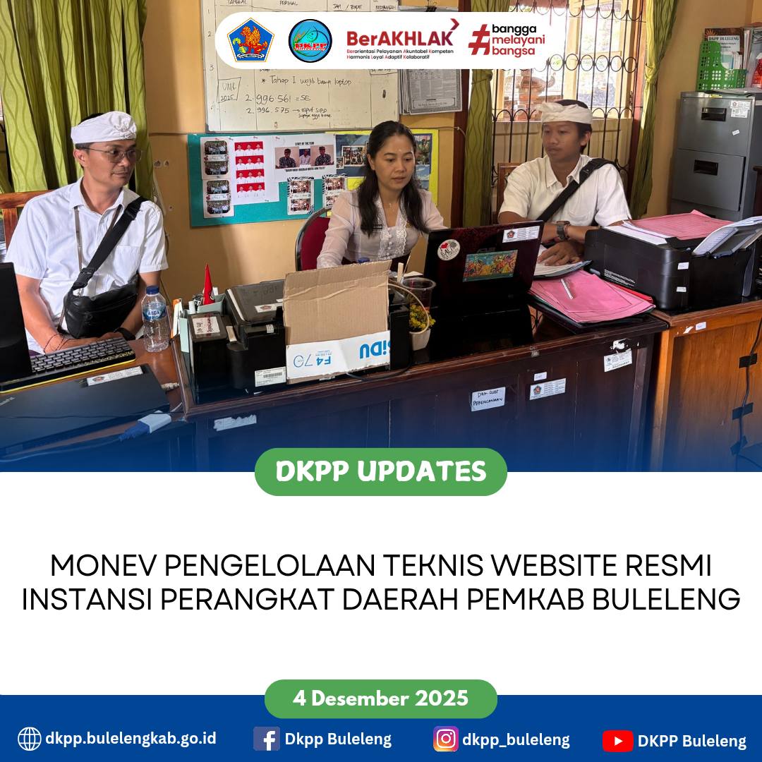 Monev website ini dalam rangka optimalisasi pengelolaan teknis Website Resmi Instansi Perangkat Daerah Pemkab Buleleng Tahun 2025. Dari DKPP Buleleng dihadiri operator website.
