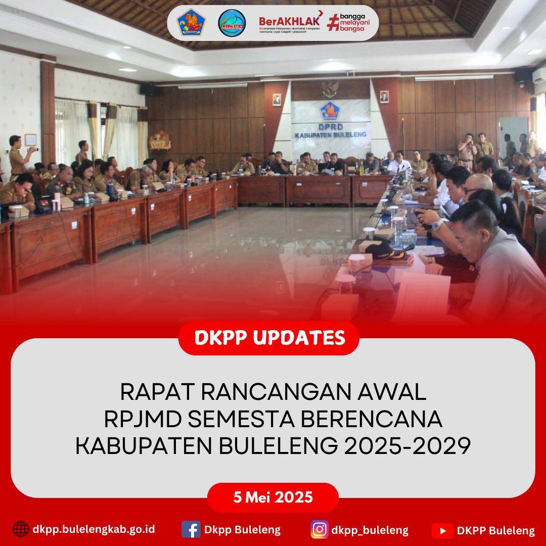 Senin, 5 Mei 2025 - Kepala Dinas Ketahanan Pangan dan Perikanan Kabupaten Buleleng I Gede Putra Aryana, S.Sos., MAP. menghadiri rapat bersama DPRD Buleleng membahas Rancangan Awal Rencana Pembangunan Jangka Menengah Daerah (RPJMD) Semesta Berencana Kabupaten Buleleng 2025-2029, bertempat di Ruang Gabungan Komisi DPRD Buleleng. Rapat dipimpin Ketua DPRD Buleleng Ketut Ngurah Arya, A.Md.Kom. bersama Bupati Buleleng dr. I Nyoman Sutjidra, Sp.OG., Wakil Bupati Buleleng, dan Sekretaris Daerah.
