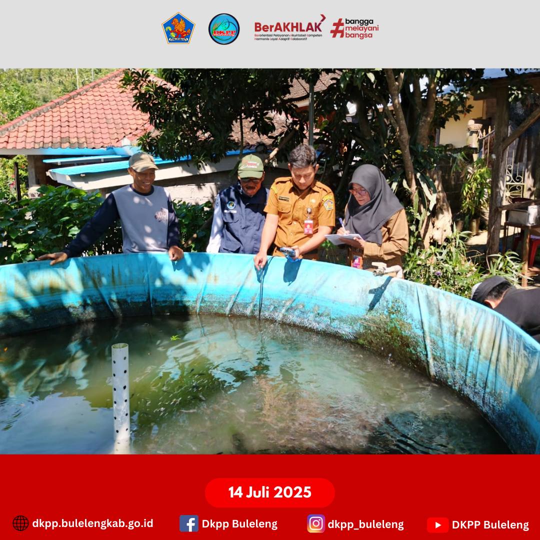 Senin, 14 Juli 2025 - Dinas Ketahanan Pangan dan Perikanan (DKPP) Kabupaten Buleleng melalui Bidang Produksi Perikanan Pembinaan dan Pemantauan Pembudidayaan Ikan di Darat dan Pengelolaan Kesehatan Ikan dan Lingkungan Budidaya pada Kelompok Pembudidaya Ikan (Pokdakan).