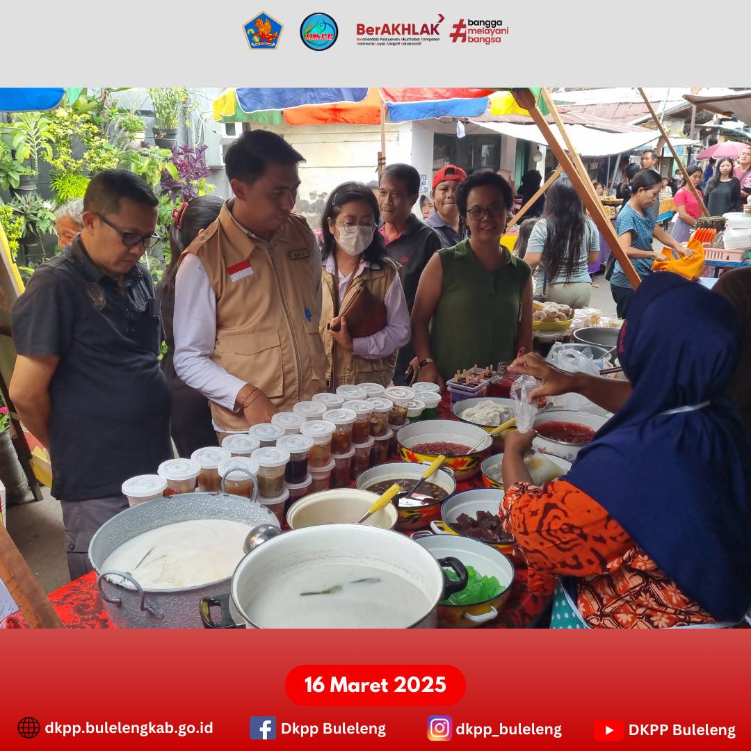 Minggu, 16 Maret 2025 - Dinas Ketahanan Pangan dan Perikanan (DKPP) Kabupaten Buleleng selaku Tim Koordinasi, Pembinaan dan Pengawasan Obat dan Makanan bersama Loka POM Kabupaten Buleleng melaksanakan Intensifikasi Pengawasan Keamanan Pangan yang berlokasi di Sentra Penjualan Takjil Ramadhan, Jalan Jeruk Singaraja pada serangkaian momen Ramadhan dan menjelang Idul Fitri Tahun 2025.